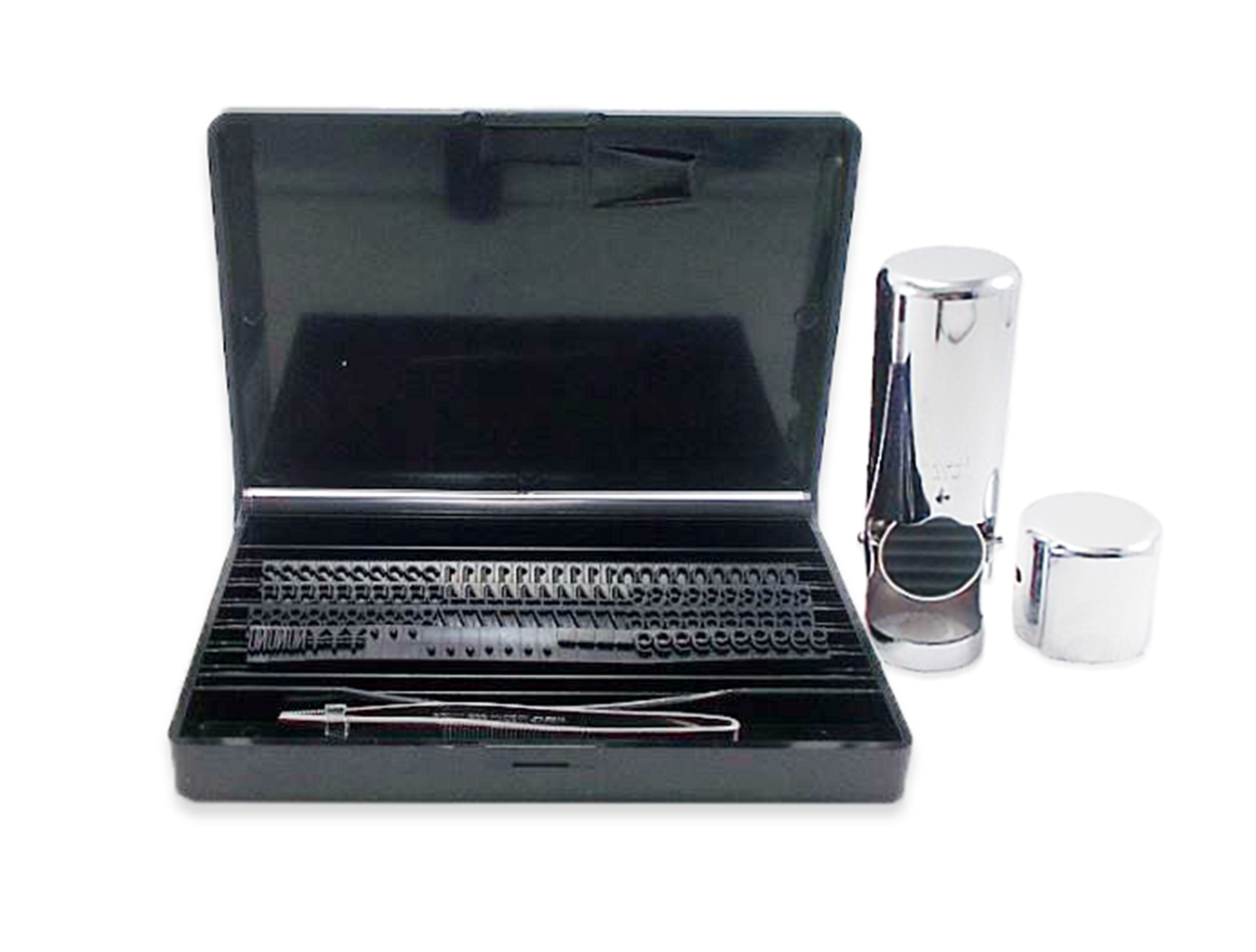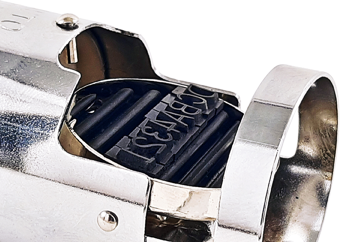 Rubber stamp available in 5 sizes (1.5 – 5 mm high)